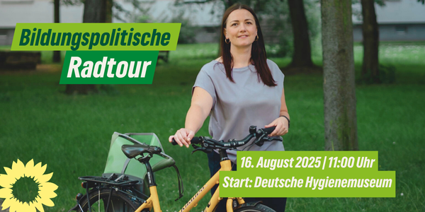 Unsere bildungspolitische Sprecherin Katharina Ringler lädt zur gemeinsamen Fahrradtour ein. Wir halten an verschiedenen Stationen in Dresden und diskutieren über aktuelle bildungspolitische Themen – von Schulbau bis Lernmittelfreiheit, von Beteiligung bis Chancengleichheit.